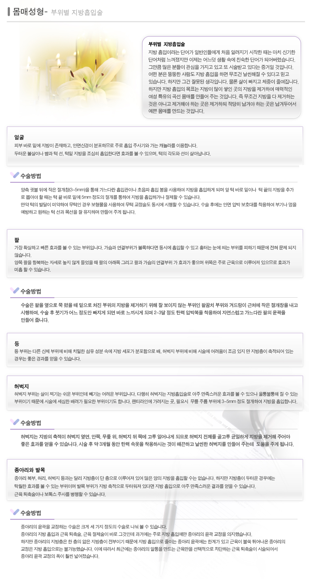 > 부위별 지방흡입술